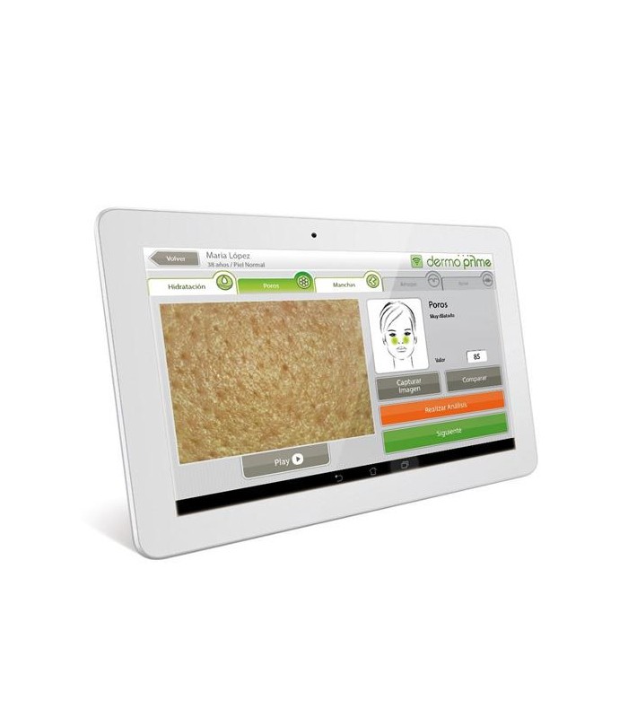 Identifica e oferece a cada cliente o tratamento mais adequado para a sua pele ao criar um plano personalizado de cuidados de beleza. É o único equipamento no Mercado com 7 parâmetros de medição numa única lente que fazem uma análise visual e um diagnóstico de pele. Através do tablet é possível acompanhar o progresso visível da cliente. Os resultados apresentados em forma de gráfico e diagrama são depois usados para fazer a prescrição de acordo com a cliente. Parâmetros de medição: • Óleo/sebo (tipo de pele) • Hidratação • Poros • Acne • Manchas • Rugas • Queratina
